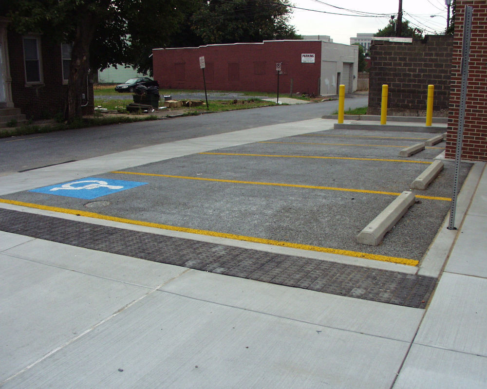 The project itself was more of a challenge than normal because of the tight constraints working in the city and dealing with city traffic. With asphalt paving, a tractor trailer would be required to drop off a paving machine, a dump truck would be required to haul the paving material, the paving machine would be required to place it and the tractor trailer would have to make a return trip to pickup the paving machine. All of which adds traffic congestion. Since the pervious concrete, supplied by Pennsy Supply, was placed with wet benches, all that was required was a concrete truck to deposit the material at the site. Placement of the material was facilitated by hand with the use of a roller screed. The pervious concrete was delivered quickly, and with little traffic interruption