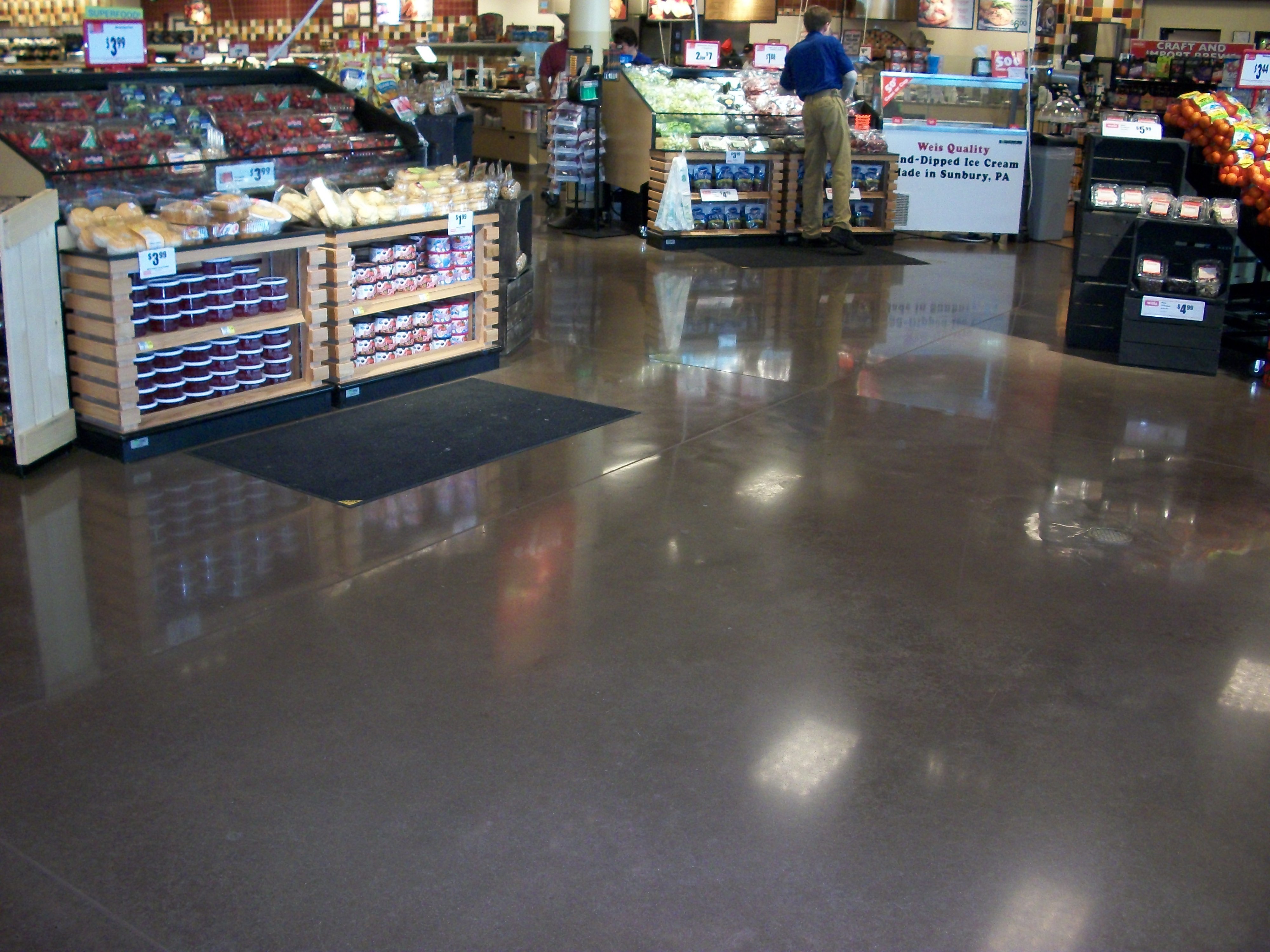 In addition to reducing the lighting costs for the store, the use of concrete floors greatly reduced the amount of maintenance necessary to keep the floor clean. The liability and risk exposure for customer slips and falls was also greatly reduced because concrete floors are considerably more skid-resistant than vinyl flooring.