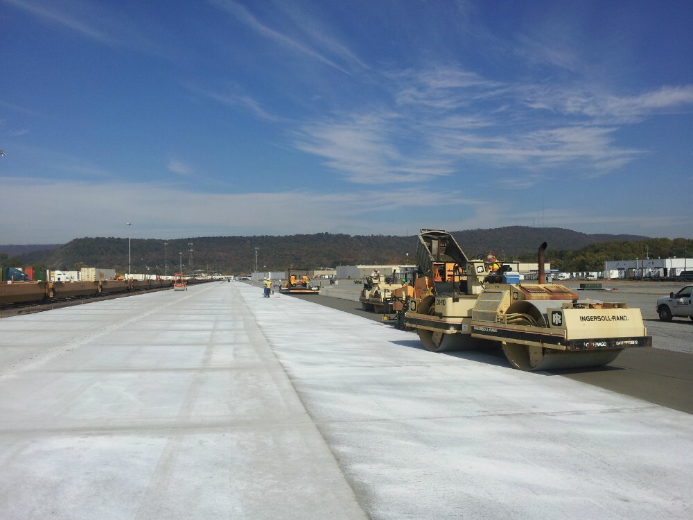 The equipment used to facilitate the movement of the shipping containers at the facility and the volume of trucks in and out places extreme demands on the pavement. Norfolk Southern selected Roller Compacted Concrete (RCC) to meet those demands and Conewago Enterprises to produce and install the product.