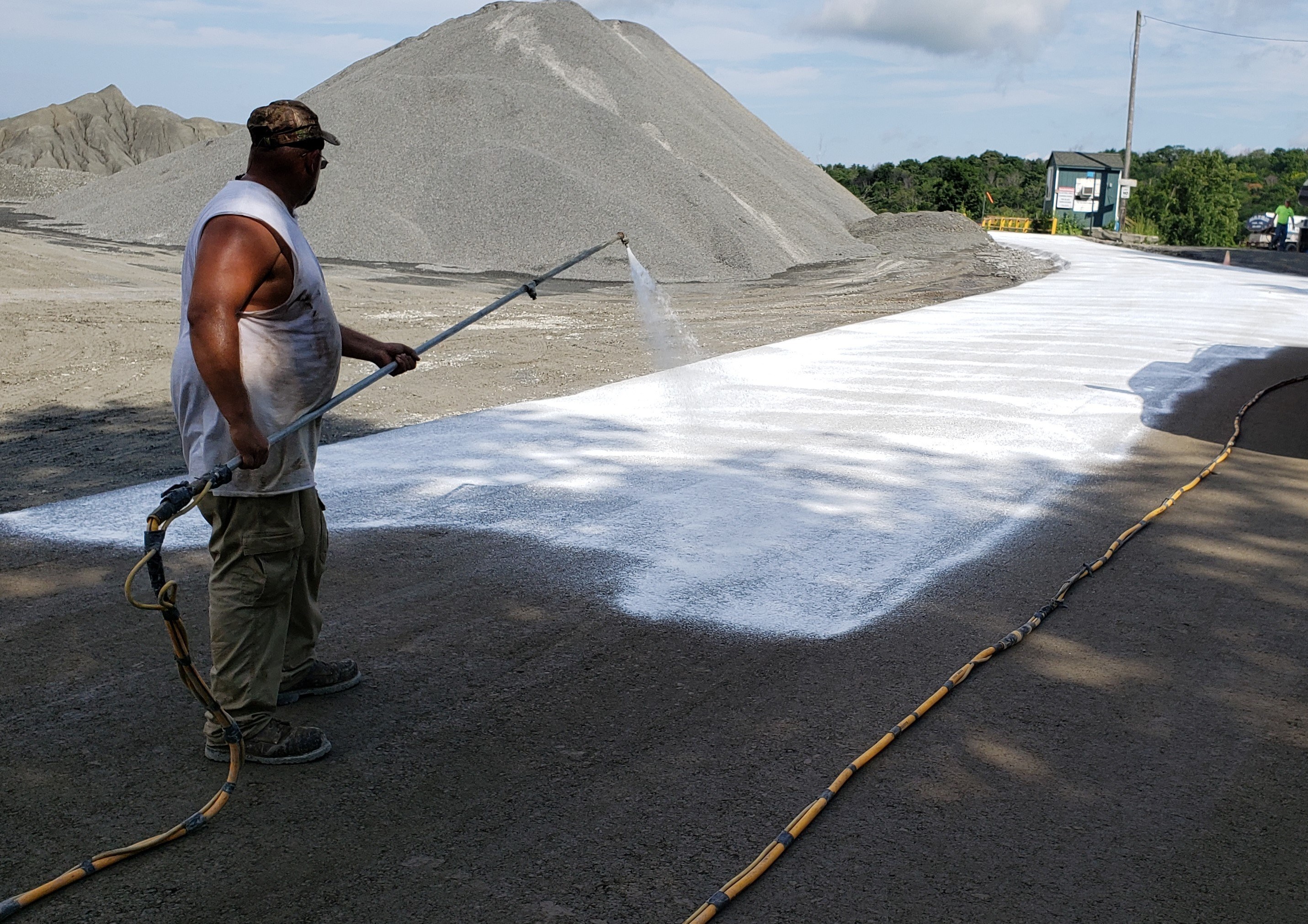 The entranceway to the quarry is approximately 800’ long and 24’ wide. Truck traffic varies from as few as 25 trucks per day to 250 trucks per day during peak times. Because of the activity at the quarry, it was important that the construction had minimal impact on the company’s ability to service its customers.
